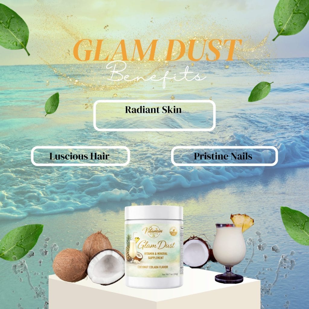 Glam Dust features a delicious coconut colada flavor combining smooth coconut taste with tropical